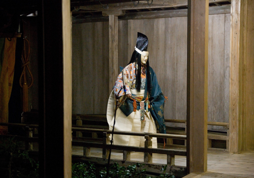 経政の成仏を祈る音楽が響き、夜半を過ぎた頃、燈火(ともしび)のなかに人影がほのかに見えてきました。不思議に思った行慶がどういう方が現れたのかと問うと、その人影は、「経政の幽霊である、お弔いの有難さに現れたのだ」と告げるのでした。