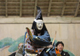 行慶が声の方へ向くと、人影は陽炎のように消えて声ばかり残ります。なお行慶が消え残る声と言葉を交わすと、亡霊は、花鳥風月を愛で、詩歌管弦に親しんだ在りし日を懐かしみます。そして青山の琵琶を奏で、舞うなどして往時の様子をあらわにし、夜遊の時を楽しむのでした。しかしそれも束の間。修羅道に堕ちた身には、憤りの心が起こります。経政はあさましい戦いに苦しむ姿を見せ、その身を恥ずかしく思って人に見られまいと燈火を消し、暗闇に紛れて消え失せていきました。